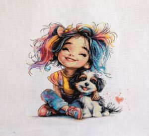 – Patrycja Kołodzejczyk praca pt. „Kolorowa dziewczynka z pieskiem”